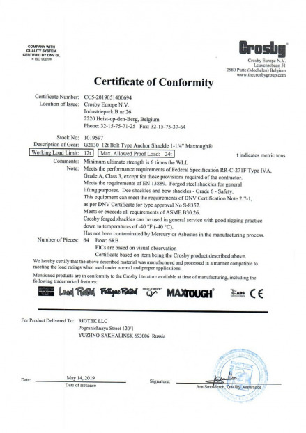 Интервал не превышающий 12 мес. | Полный комплект грузоподъемного оборудования | - | - | Да | V |