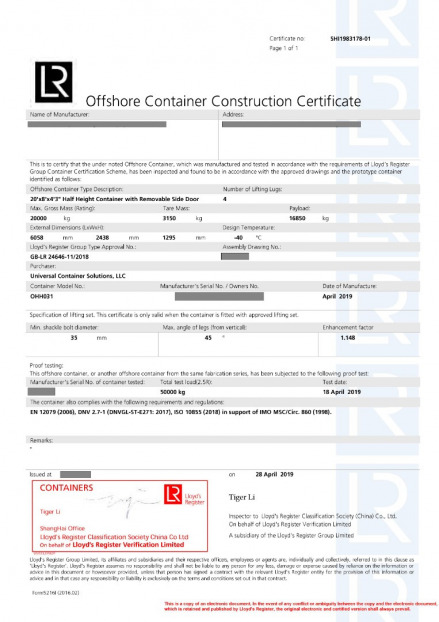 Предоставлямые в аренду офшорные контейнеры спроектированы, изготовлены и проходят обязательные освидетельствования и испытания нагрузкой в соответствии с такими стандартами как: